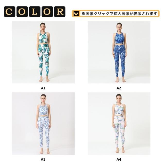 ヨガウェア セット 安い 上下セット レディース おしゃれ レギンス 花柄 セットアップ ハイウエスト スポーツウェア トップス 体型カバー
