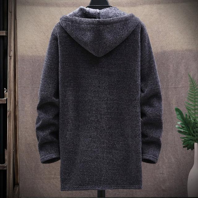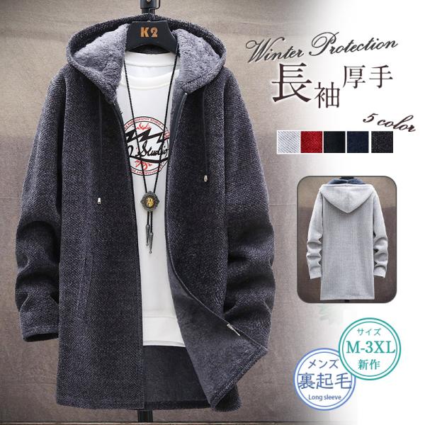 ニットパーカー メンズ フード付き ジップパーカー 長袖 冬服 裏起毛 ロング丈 ジャケット コート トップス アウター インナー
