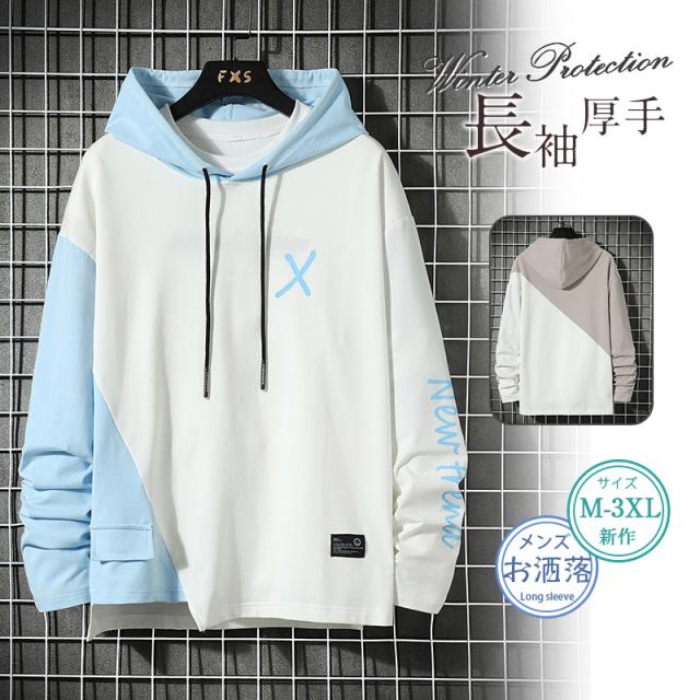 パーカー メンズ 秋服 プルオーバー 長袖 フード付き あったか 裏起毛 英文字 袖ライン カジュアル プルパーカー 春服 春夏秋冬 新作