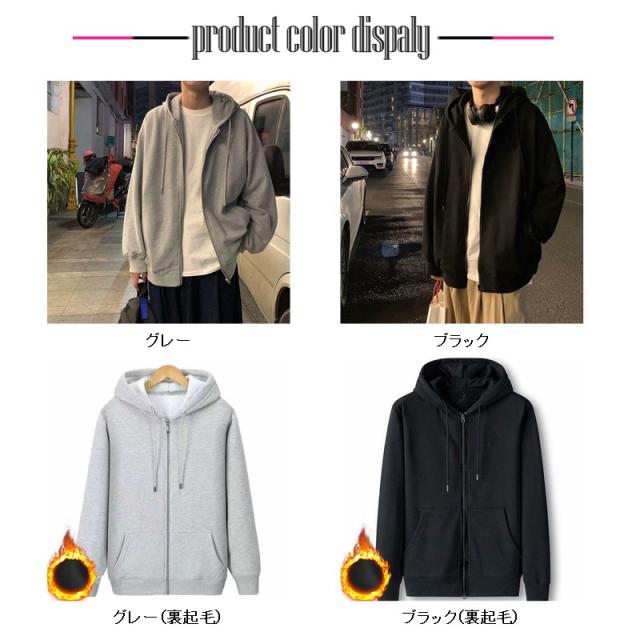 パーカー メンズ フード付き あったか 裏起毛 ジップアップ パーカー 無地 軽量 ハイネック 秋冬 トップス インナー シンプル