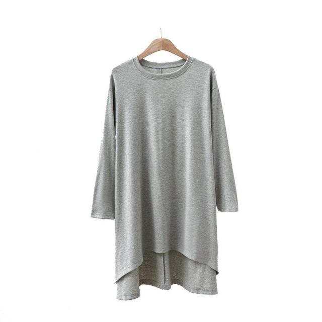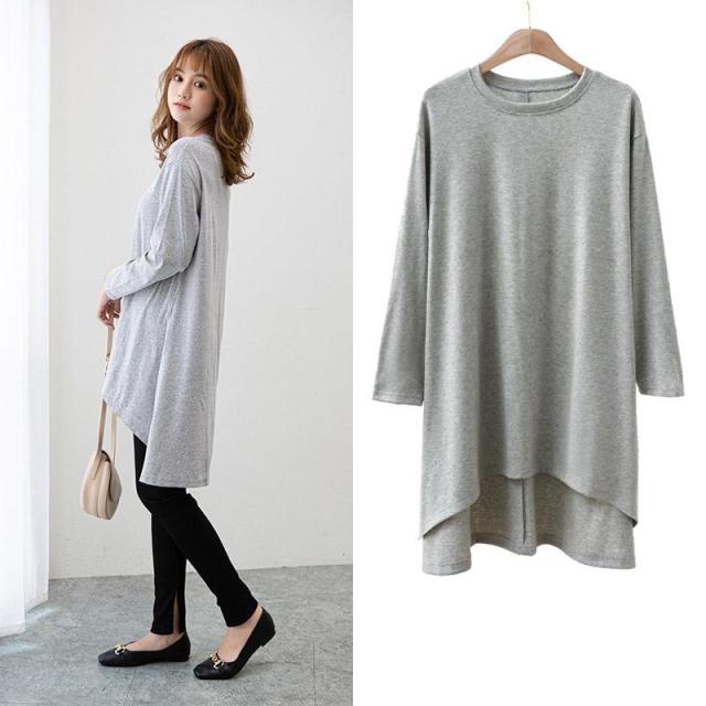 夏ワンピース スリット Tシャツ ロングTシャツ 長袖 レディース チュニック 無地 トップス 大人 可愛い シンプル 体型カバー