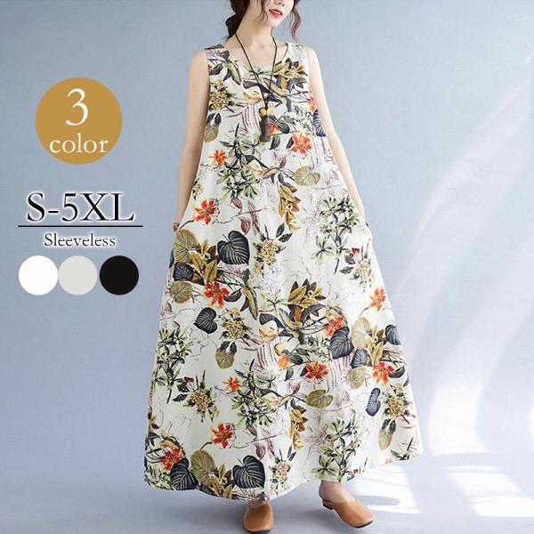 夏ワンピース ロングワンピース レディース 花柄 綿麻 マキシ丈 キャミ ロング リネン aライン 大きいサイズ 体型カバー きれいめ
