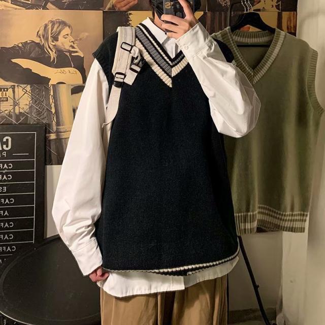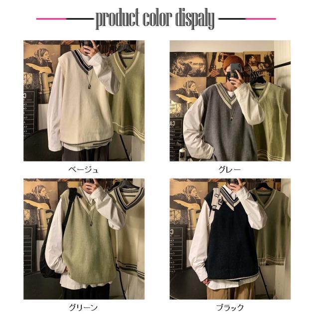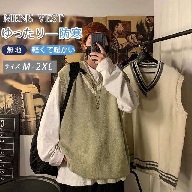 ニットベスト メンズ Vネック プルオーバー スクールベスト セーター ビジネス ゆったり 制服 シンプル 無地 通学 原宿風 オールシーズン 春秋