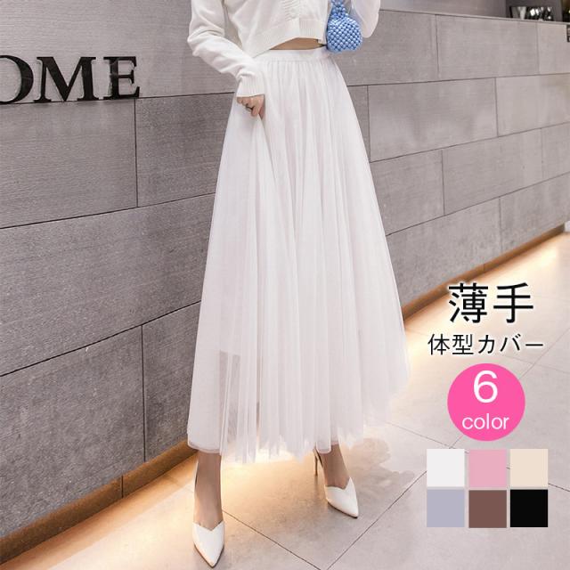 スカート ロングスカート お花見 レディース チュールスカート ひざ丈 マキシスカート プリーツスカート ウエストゴム 柔らかい 大きいサイズ 春新作