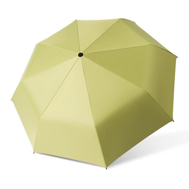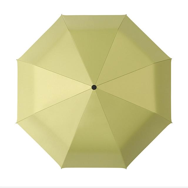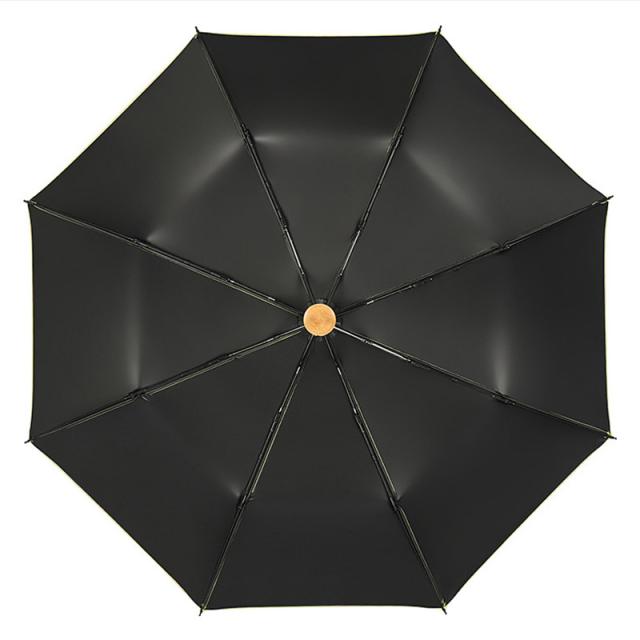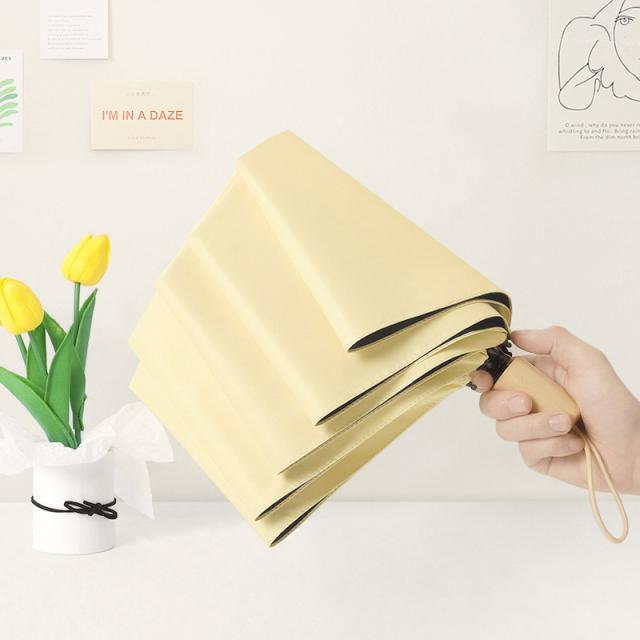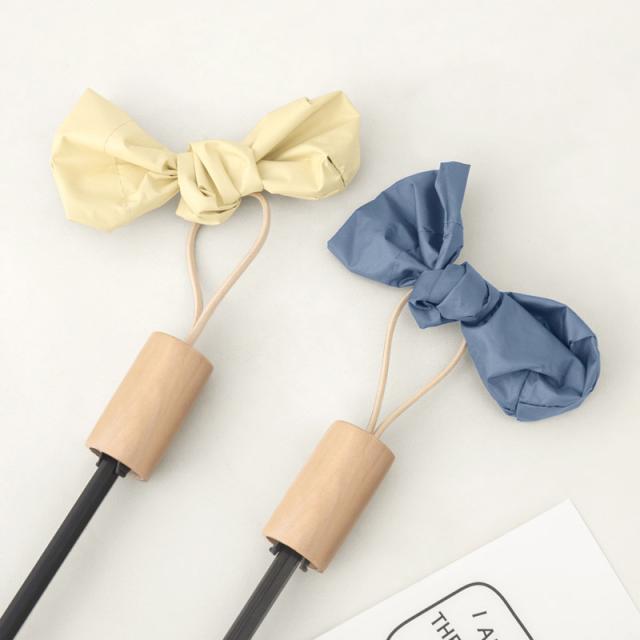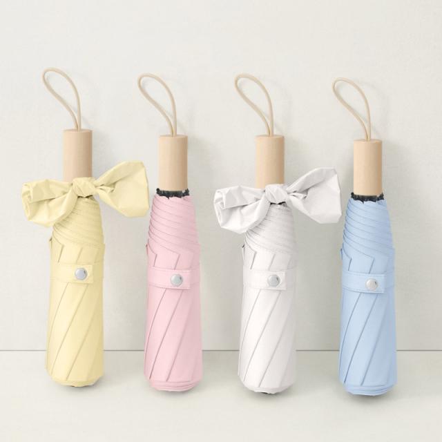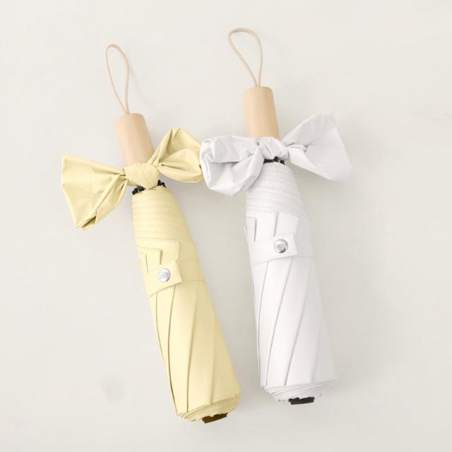 木製ハンドルとカラーがおしゃれな晴雨兼用の折りたたみ傘。