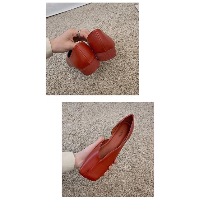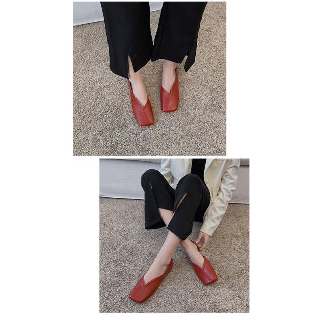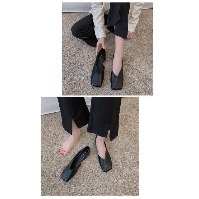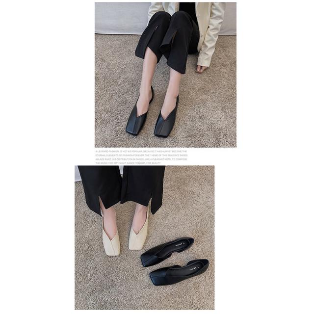 ・スクエアトゥ×Vカットで履くだけで大人なこなれ感を演出。