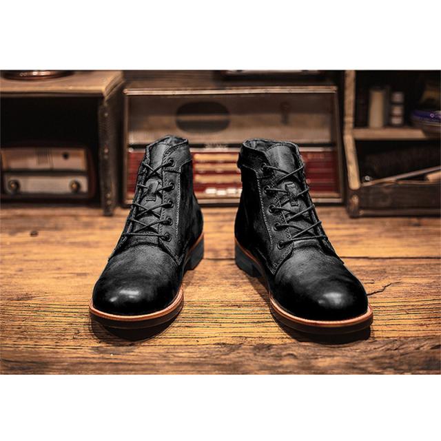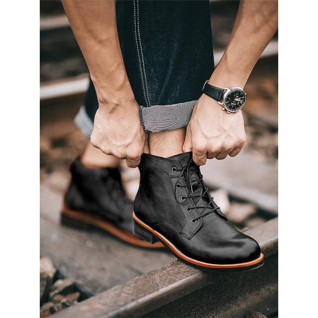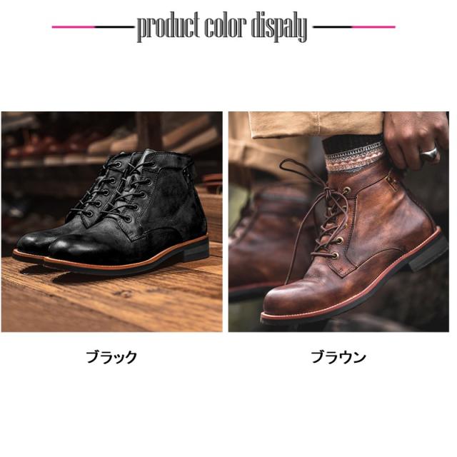 ブーツ メンズ レザー ワークブーツ ショートブーツ 光沢感 高級感 メンズ靴 エンジニアブーツ 厚底 バイクブーツ 滑り防止 カジュアル 履きやすい