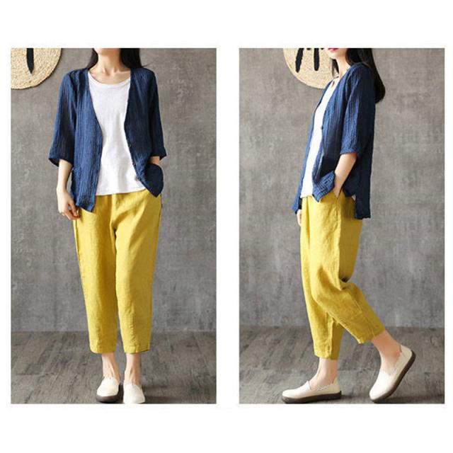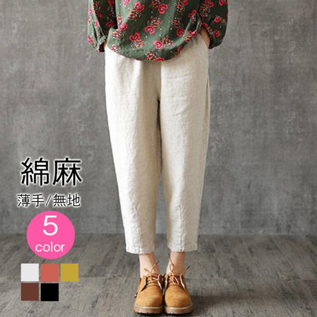 ワイドパンツ レディース サルエルパンツ 9分丈 アンクル丈 綿麻ズボン 無地 夏パンツ リネンパンツ 人気 太め ゆったり 体型カバー 大きいサイズ 薄手 春夏