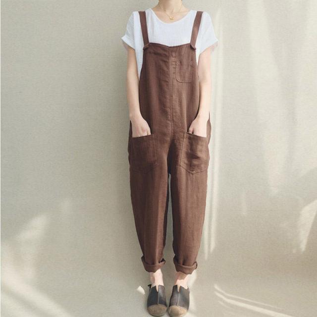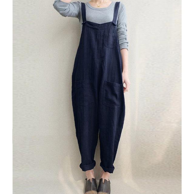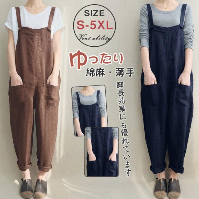 サロペット オールインワン レディース オーバーオール 綿麻 無地 ロング丈 マキシ丈 薄手 ガウチョパンツ 部屋着 ワイドパンツ 春夏秋 オシャレ