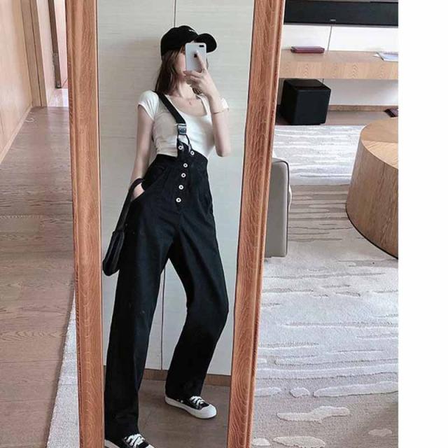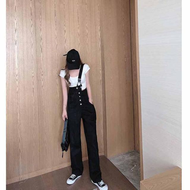 スッキリラインのワイドシルエットなので大人っぽいこなれ感を演出する"大人のサロペット"
