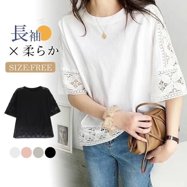 tシャツ レディース 半袖 レース 刺繍 ゆったり カジュアル クルーネック カットソー トップス きれいめ カジュアル 大きいサイズ シンプル 夏