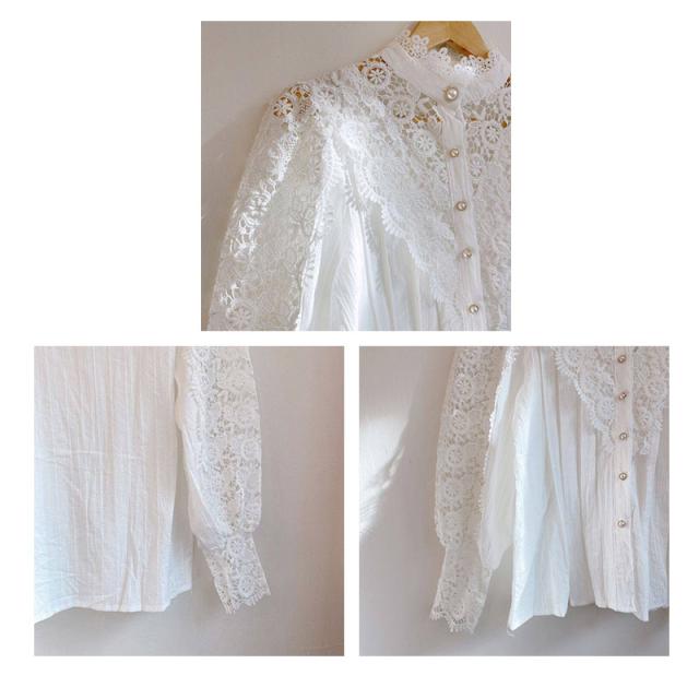 シャツ ブラウス レディース 刺繍 レースブラウス トップス 長袖 シャツ 大人セレブ カットソー おしゃれ韓国ファッション 春秋新作