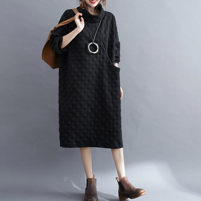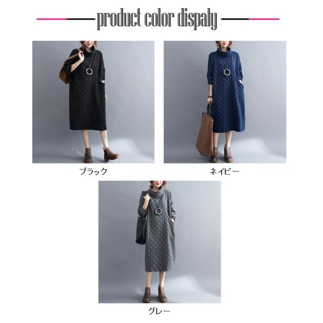 ワンピース チュニック 冬 ロング レディース 40代 膝丈 長袖 厚手 ロングワンピース ハイネック 体型カバー 無地 大きいサイズ 冬物