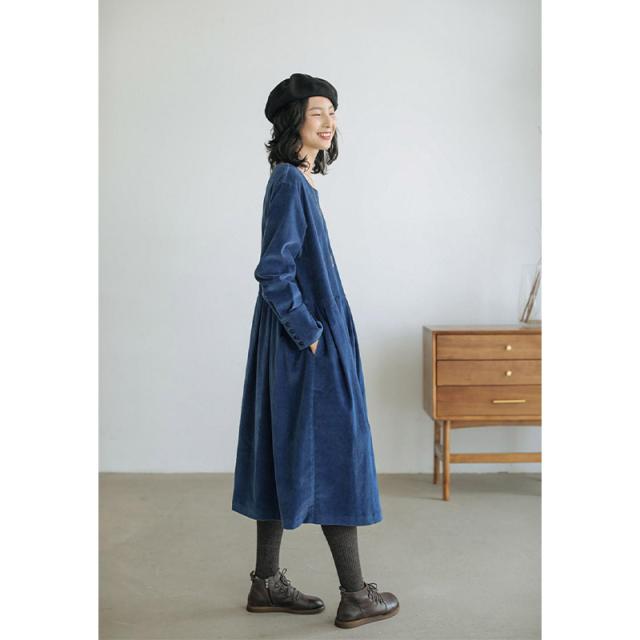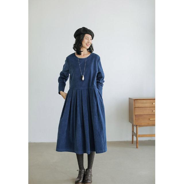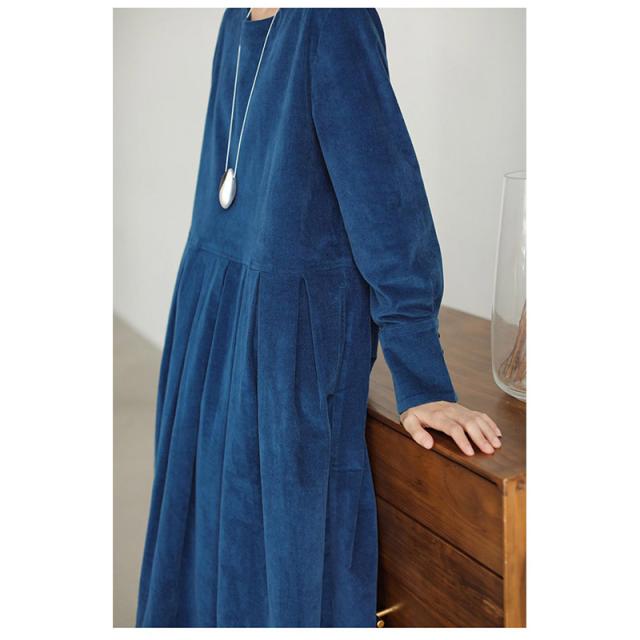 ニットワンピース ワンピース コーデュロイ 厚手 丸首 きれいめ 長袖 大人 ロング マキシ丈 秋冬 冬 大きいサイズ レディース