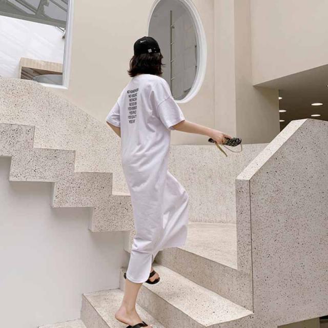 ワンピース 半袖 レディース Tシャツワンピース ロングTシャツ 半袖Tシャツ 半袖ワンピース ストレート ロング丈 シンプル 部屋着 ルームウェア