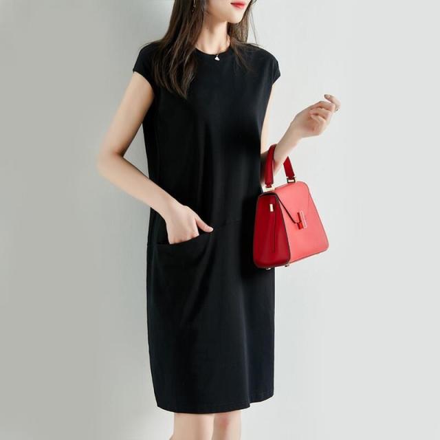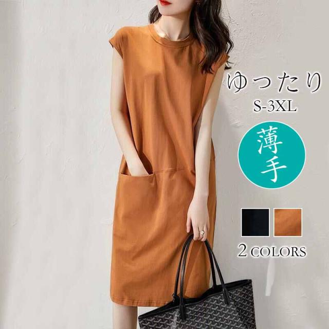 レディース ワンピース ノースリーブ 袖なし Tシャツワンピース ロングワンピース 膝丈 ミディアム丈 薄手 サマーワンピース ゆったり 夏