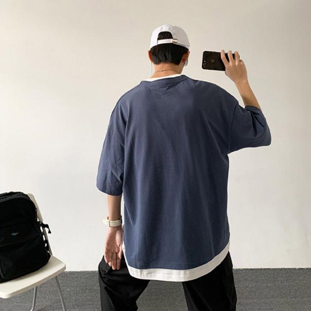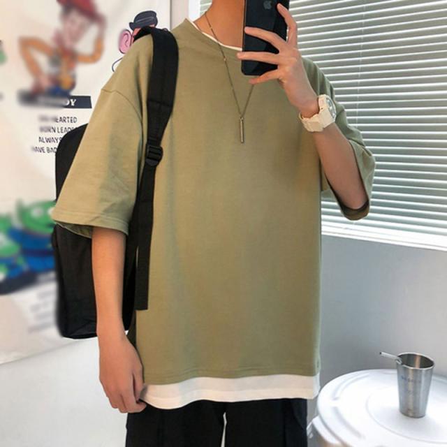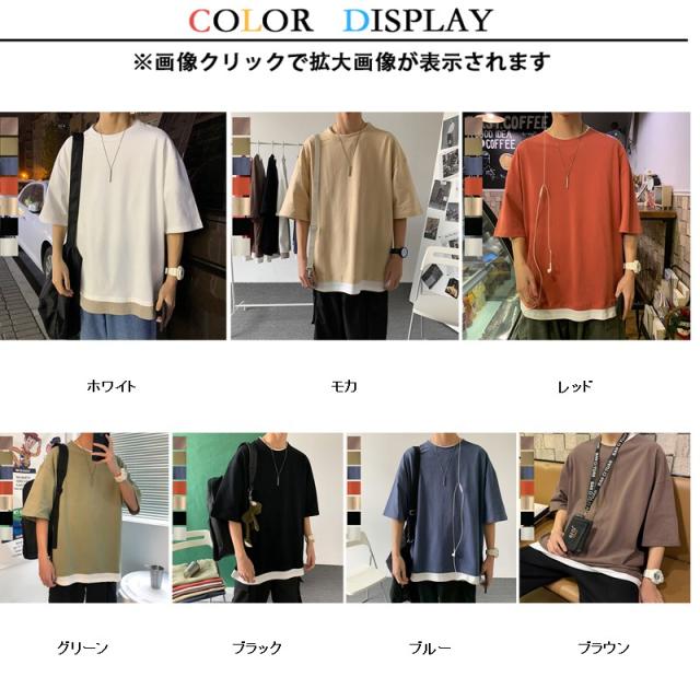 Tシャツ メンズ 重ね着風 半袖Tシャツ トップス クルーネック 半袖 ティーシャツ カジュアル おしゃれ ファッション 夏