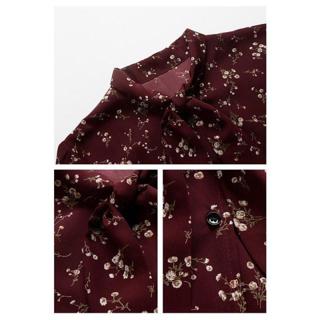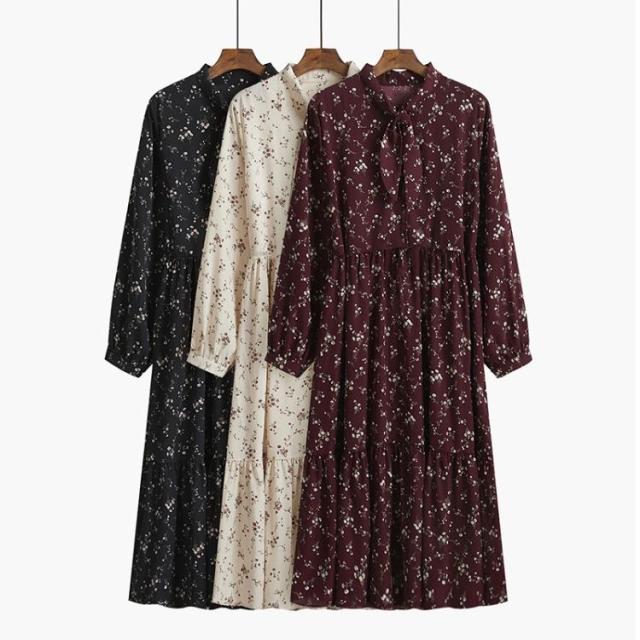 ワンピース 花柄ワンピース シフォンワンピース ひざ丈ワンピース Aラインワンピース 長袖 リボン 着痩せ 細身 ゆったり おしゃれ 大人 可愛い