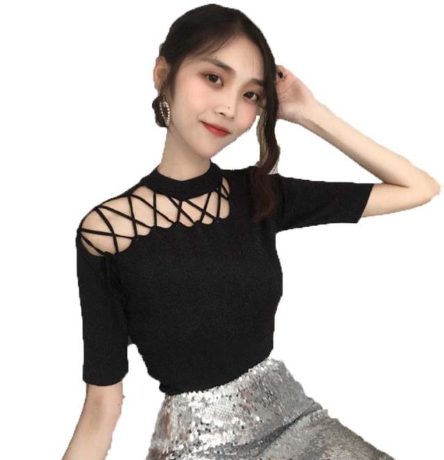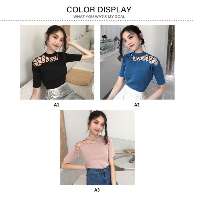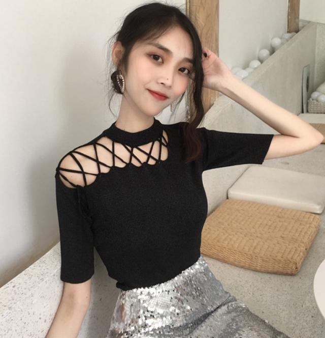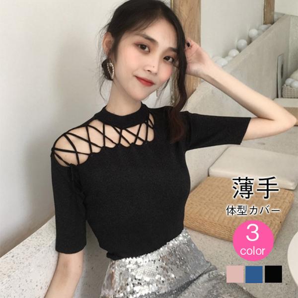 ニット 無地 肩だし ニット トップス 春夏 半袖 ニット トップス レディース 春ニット サマーニット レースアップ ニット 薄手 個性的