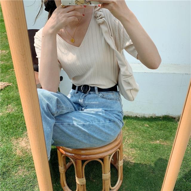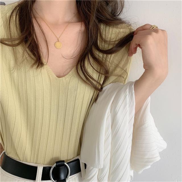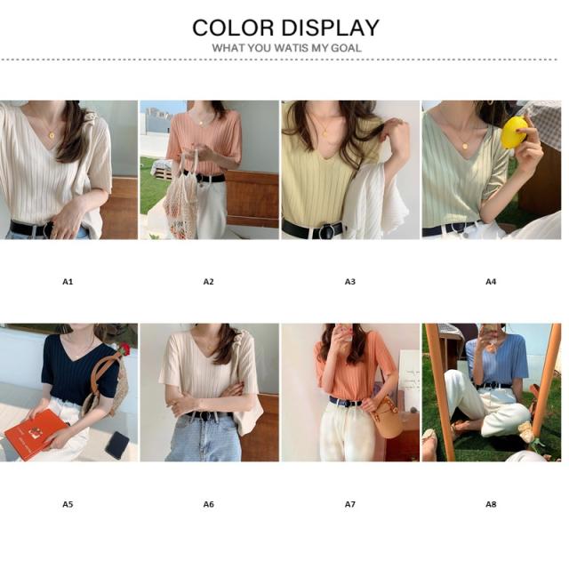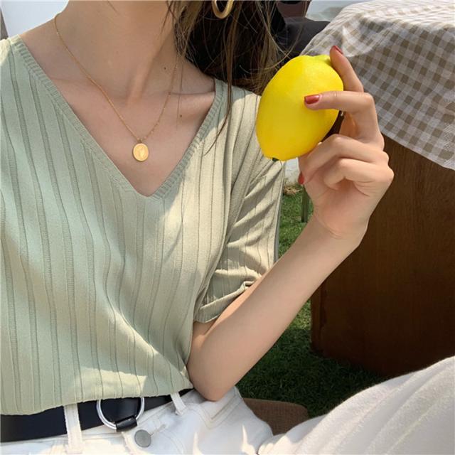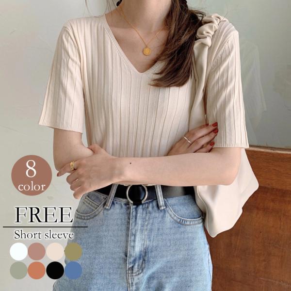 レディースファッションサマーニット 夏 半袖 五分袖 レディース プルオーバー ニット リブニット レディースニット Vネック 接触冷感 涼しい