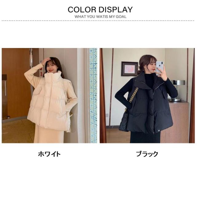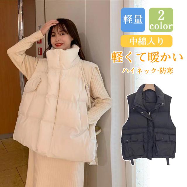 ベスト レディース 中綿ベスト ダウンベスト 防寒ベスト ハイネック 中綿入り チョッキ ジレ アウター トップス 立ち襟 カジュアル ゆったり 秋冬