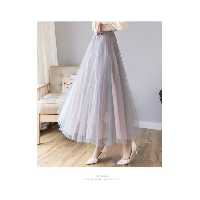 チュールスカート スカート マキシスカート ロングスカート 配色 フレアスカート ウエストゴム マキシスカート お花見 春夏 春秋 綺麗 お洒落