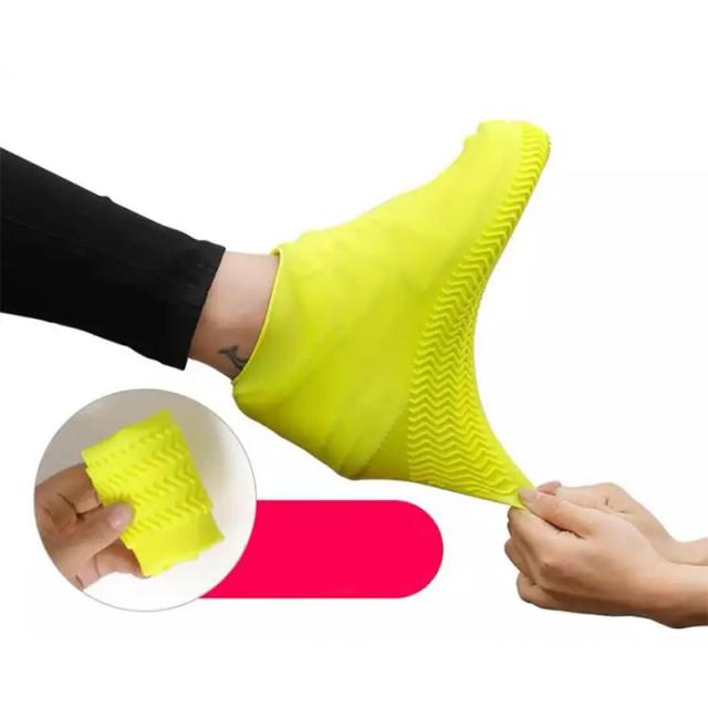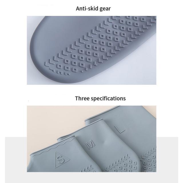 伸縮性のあるシリコン素材で、靴にピッタリとくっつき雨の侵入を防ぎます。
