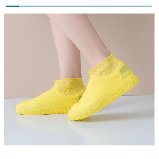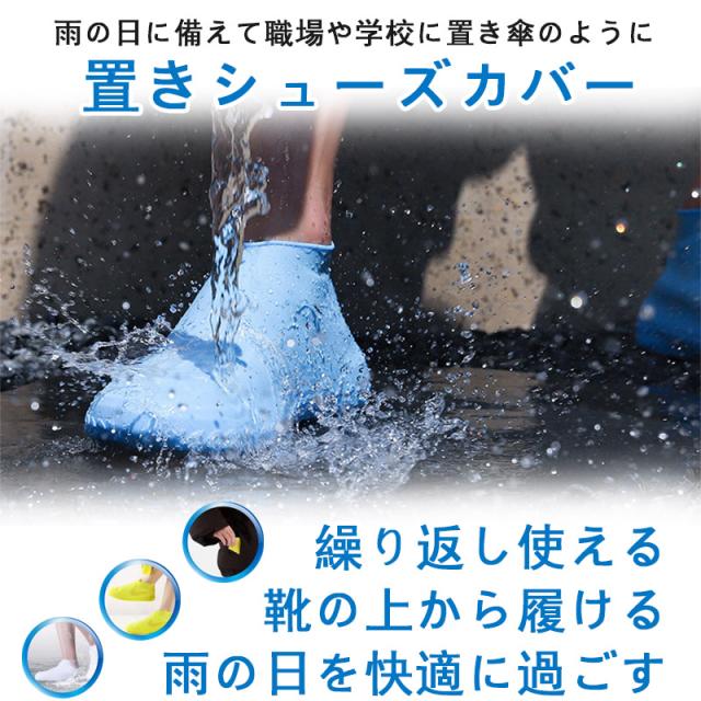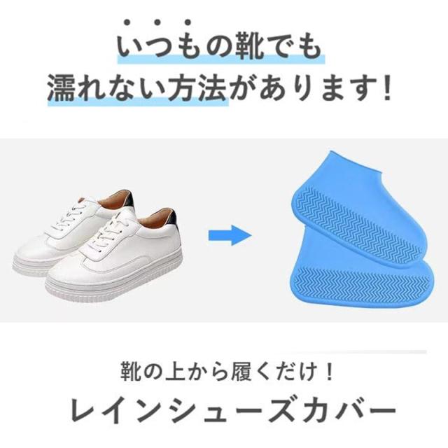 雨の日に靴の上から履けくだけで雨や泥から靴を守るレインシューズカバー。