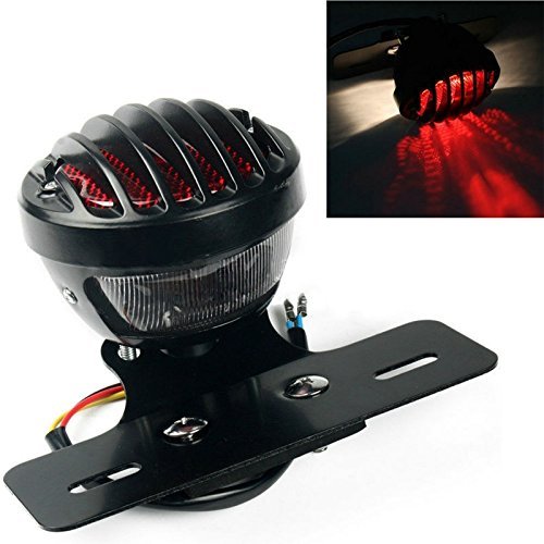 Karun 12V 丸型 バード ゲージ テール ランプ ライト ナンバー ステー 付き バイク 汎用 丸形 ブラック
