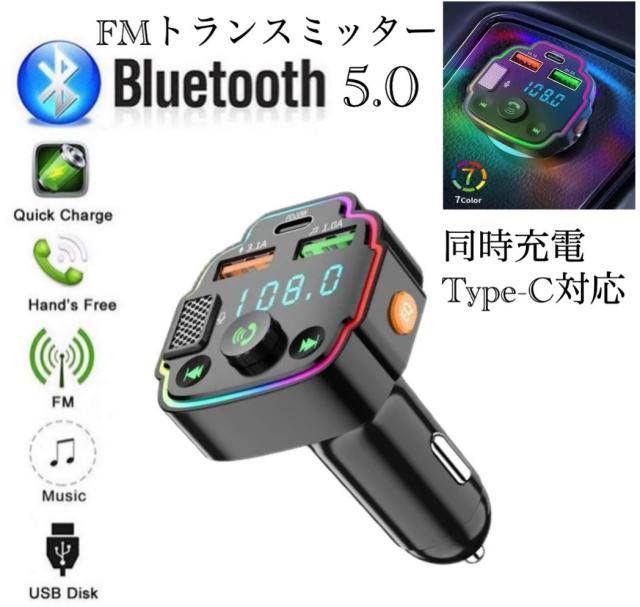 2 Bluetooth FMトランスミッター 充電器 急速充電 Type-C 対応 二台同時充電 ハンズフリー スマホ シガーソケット SDカード USB 無線 車載 車内 カーアクセサリー