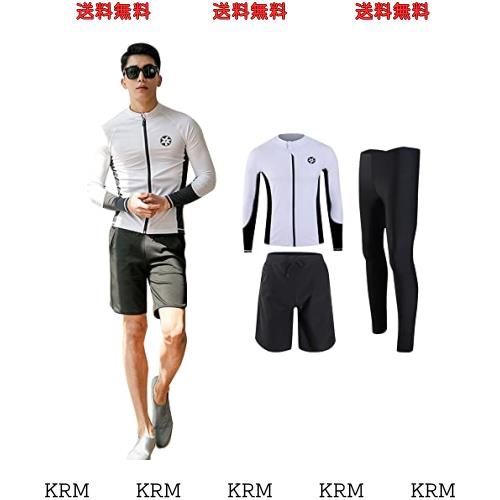 [YFMAYI] ラッシュガード メンズ 水着 長袖 レギンス サーフパンツ フィットネス UVカット 吸汗速乾 水泳 水陸両用 大きいサイズ 3点セ