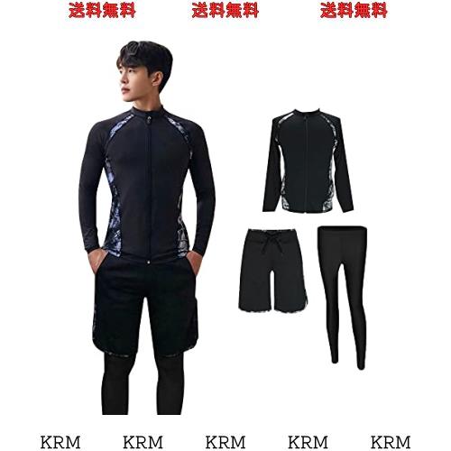 ◆商品名:[YFMAYI] メンズ 水着 ラッシュガード3点セット 吸汗速乾 水陸両用 着痩せ UVカット 長袖+レギンス+海水パンツ