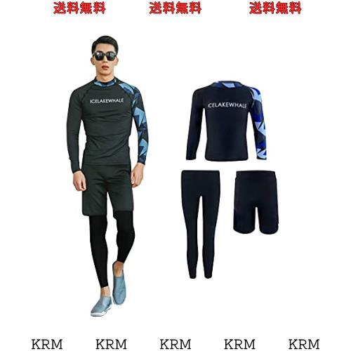 [YFMAYI] ラッシュガード メンズ 水着 長袖 レギンス サーフパンツ フィットネス UVカット 吸汗速乾 水泳 水陸両用 大きいサイズ 3点セ