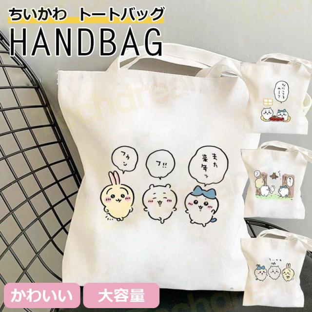 ちいかわ トートバッグ グッズ キャンバス バッグ ハチワレ うさぎ モモンガ ラッコ 抗菌 防臭 通勤 通学 大容量 小さめ A4 帆布 鞄 マチ幅広 軽量 肩掛け