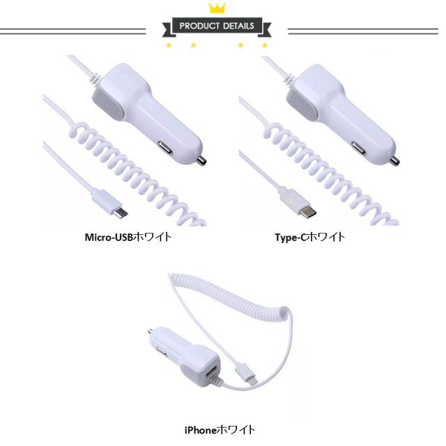 シガーソケット スマホ 充電器 カーチャージャー iPhone/Micro-USB/Type-C 充電ケーブル リール式 車載 iPhoneケーブル 国内発送 送料無料
