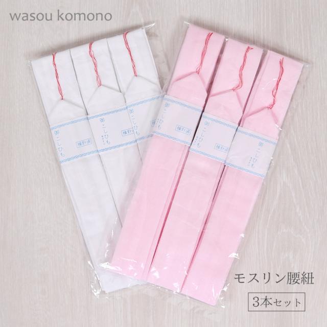 腰紐 こしひも ピンク 白 モス腰紐 3本セット モスリン 浴衣 着付け小物 腰紐 並尺 女性 男性 男女兼用 70038