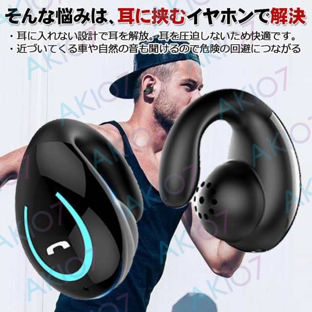 【両耳兼用】即納 イヤホン 耳を塞がない ワイヤレス bluetooth 5.0 PSE認証済み ランニング オープンイヤー ワイヤレスイヤホン ジョギング イヤーカフイヤホン 耳掛け式 マイク 片耳 高音質 防水