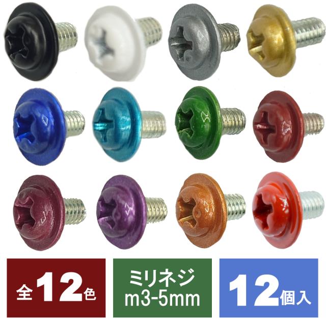 エスエスエーサービス カラバリネジ ワッシャー付ミリネジ M3-5mm 全12色 マザーボード マザボ ドライブ 固定 12個入 SN-012シリーズ