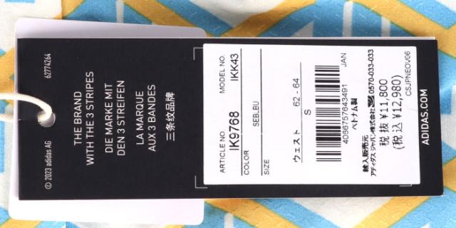 | 素材 | 本体:ポリエステル 89%、ポリウレタン 11% インナーパンツ:ポリエステル 82%、ポリウレタン 18% ウエスト内側部分:ポリエステル 80%、ポリウレタン 12%、ナイロン 8% |