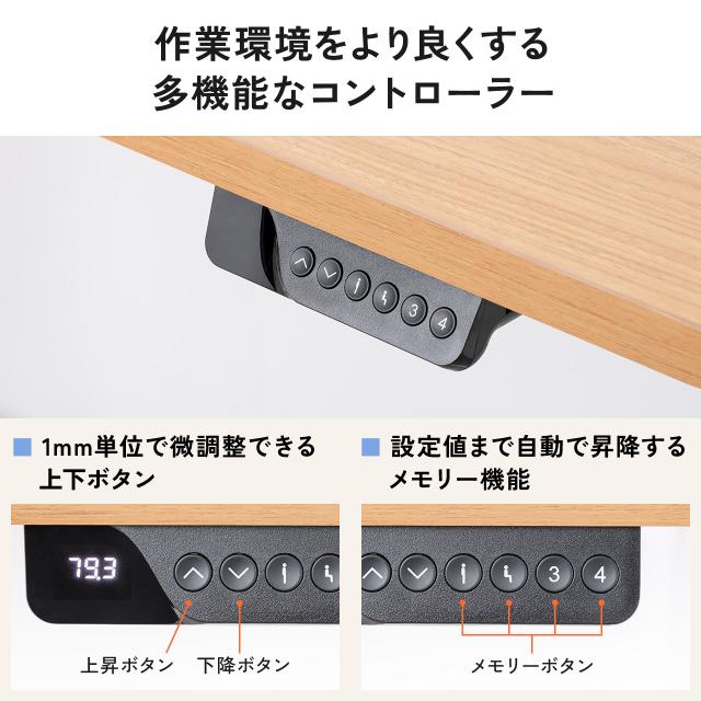 ●電動で上下昇降出来る幅120cm、奥行70cmの電動昇降デスクです。●電動モーターによりコントローラーのボタンを押すだけで上下昇降します。