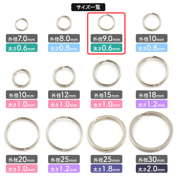 二重リング ( 二重キーリング ) 外径9.0mm 太さ0.6mm 10個セット