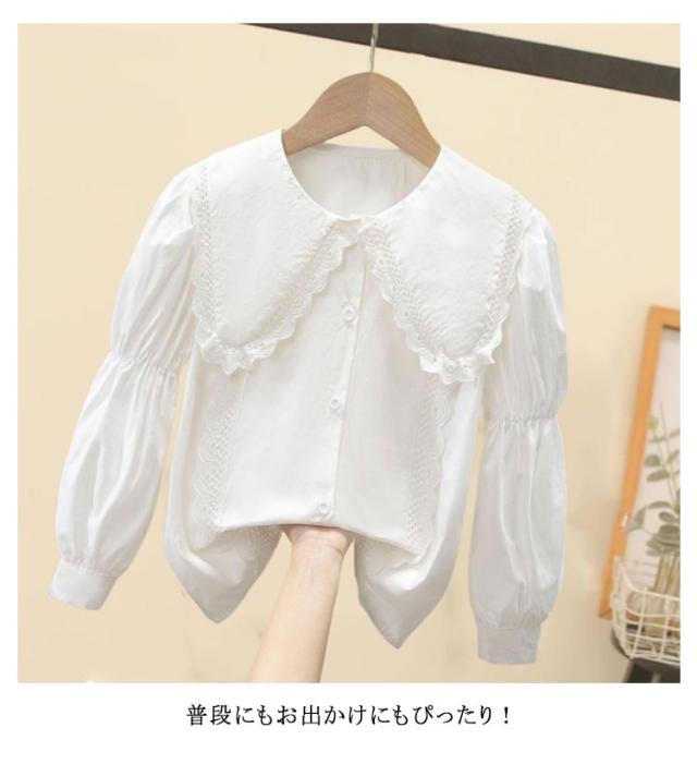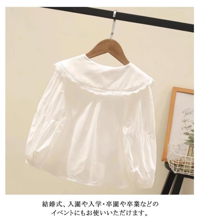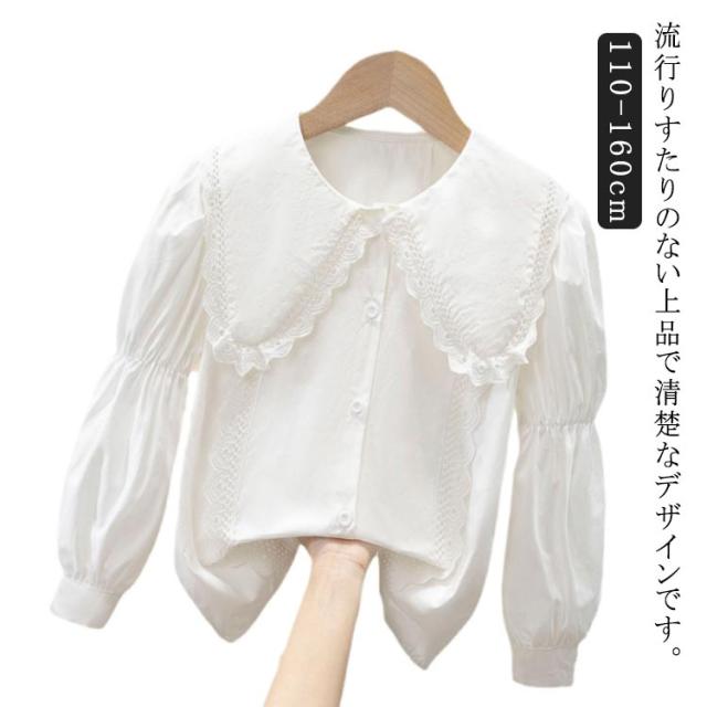 女の子 ブラウス フォーマル シャツ ホワイトシャツ リボン 丸襟 綿 入学式 卒業式 フォーマル 長袖 白ブラウス 子供スーツ 可愛い 子供服 七五三 結婚式 入園式 白シャツ 卒業式 発表会 誕生日 110 120 130 140 150 160