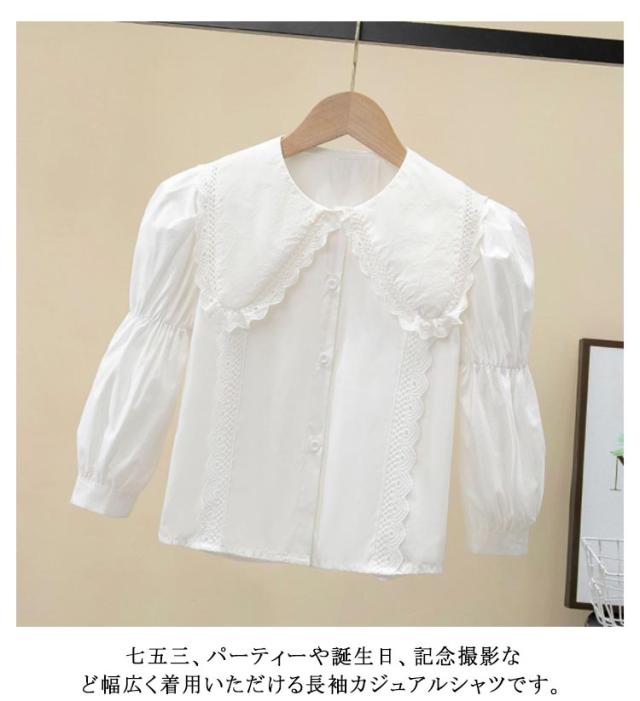| 流行りすたりのない上品で清楚なデザインです。 かわいいプリンセスの印象を与えますから、通学通園はもちろん、 結婚式、入園や入学・卒園や卒業などのイベントにもお使いいただけます。 普段にもお出かけにもぴったり! 七五三、パーティーや誕生日、記念撮影など幅広く着用いただける長袖カジュアルシャツです。 | |