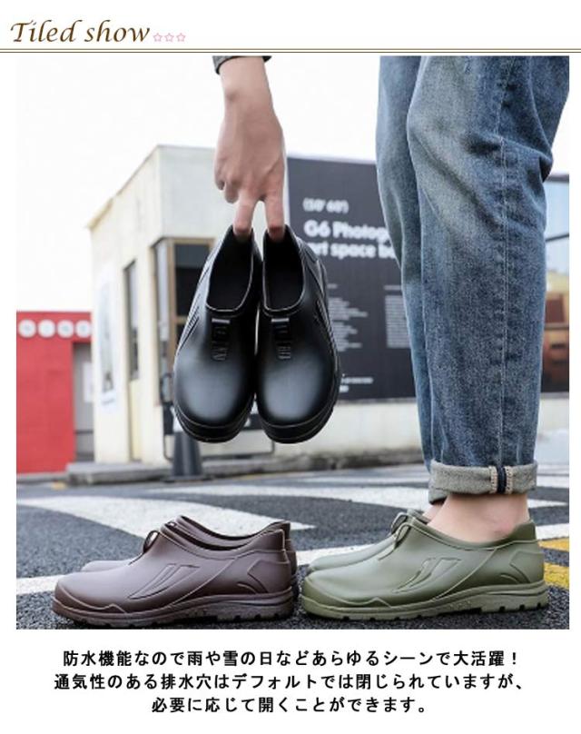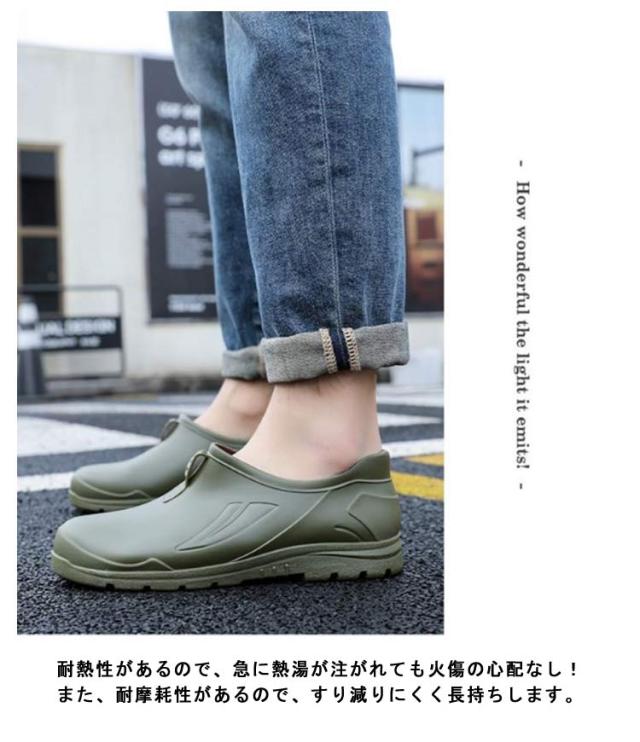 | 防水・耐油・滑りにくい 足にフィットして履きやすい! 25~27.5cm 一体型コックシューズ PVC素材を使った、アッパーに穴を設計していなくて、防水、耐油の機能を備えます。油汚れが付いても、すぐに拭き取りできます。 水や油、洗剤等滑りやすい床面での作業に適した滑りにくいハイグリップソールで安定感が高い! 高品質のゴムソールは人間工学に基づいて作られており、地面の衝撃を吸収し、足の疲労を軽減して快適さを与えます。 耐熱性があるので、急に熱湯が注がれても火傷の心配なし! また、耐摩耗性があるので、すり減りにくく長持ちします。 防水機能なので雨や雪の日などあらゆるシーンで大活躍! 通気性のある排水穴はデフォルトでは閉じられていますが、必要に応じて開くことができます。 | |