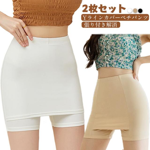 2枚セット Yラインカバーパンツ ペチパンツ 張り付き解消 透け防止 インナー 接触冷感 レディース Yラインカバーペチパンツ ひんやり ペチコート 透けない ショートパンツ 吸汗速乾 下着 春夏 SNS話題 スカート ワンピース