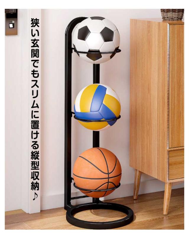 | 工具不要で誰でも組み立てられるボールスタンド♪ 丈夫で長く使える厳選カーボンスチール製♪ バスケットボールやバレーボールなどを転がらずにスッキリ片付け♪ 狭い玄関でもスリムに置ける縦型収納♪ | |