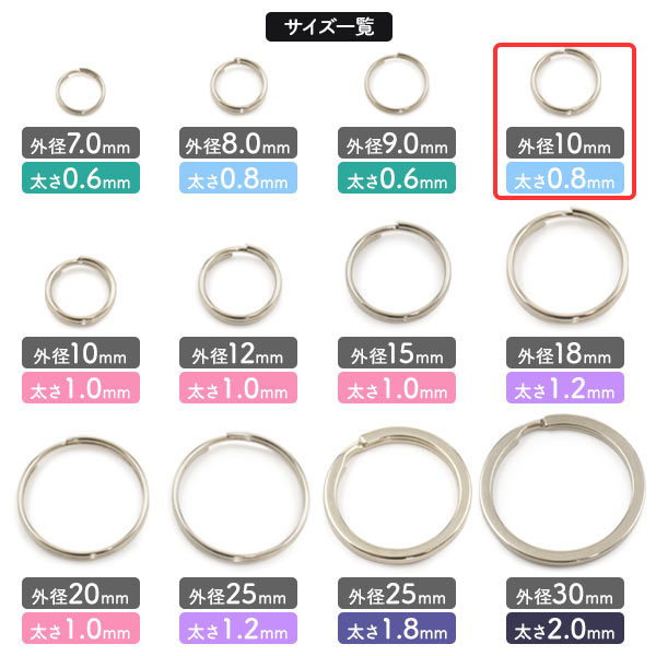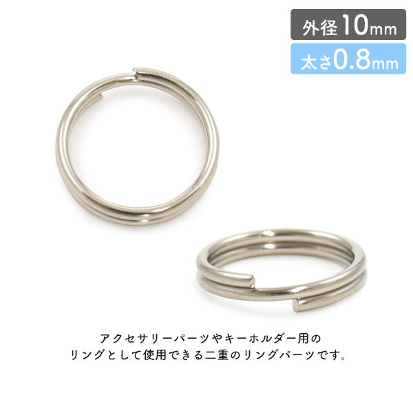 二重リング 外径10mm 太さ0.8mm 10個セット 二重キーリング アクセサリーパーツ キーホルダー DIY パーツ 素材 修理 キーホルダー作成 手作り工作 ストラップ作成 小物 手作りアクセサリー パーツ素材 手芸 2重リング