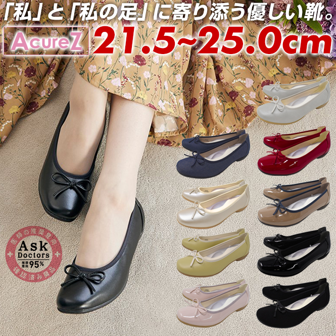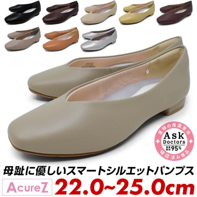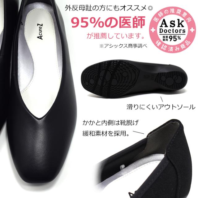 アシックス商事 アキュアーズ Vカット パンプス レディース 3E相当 幅広 スクエアトゥ ウェッジソール 痛くない 歩きやすい 疲れない 履きやすい AcureZ asics 外反母趾 強剛母趾 黒 茶色 赤 革 エナメル サテン ポイント消化