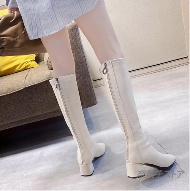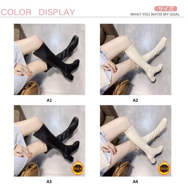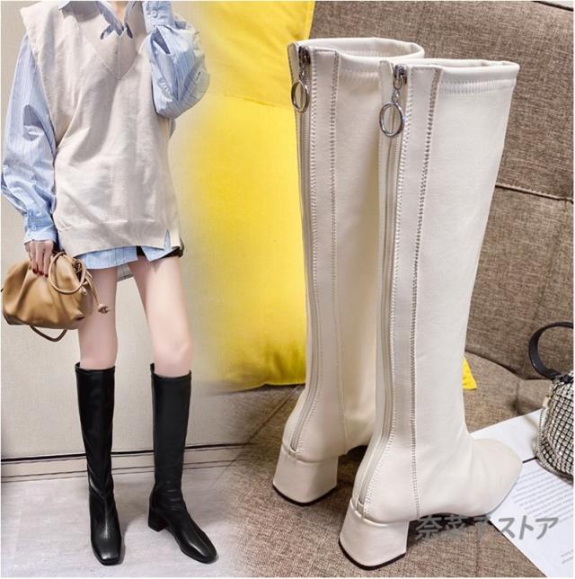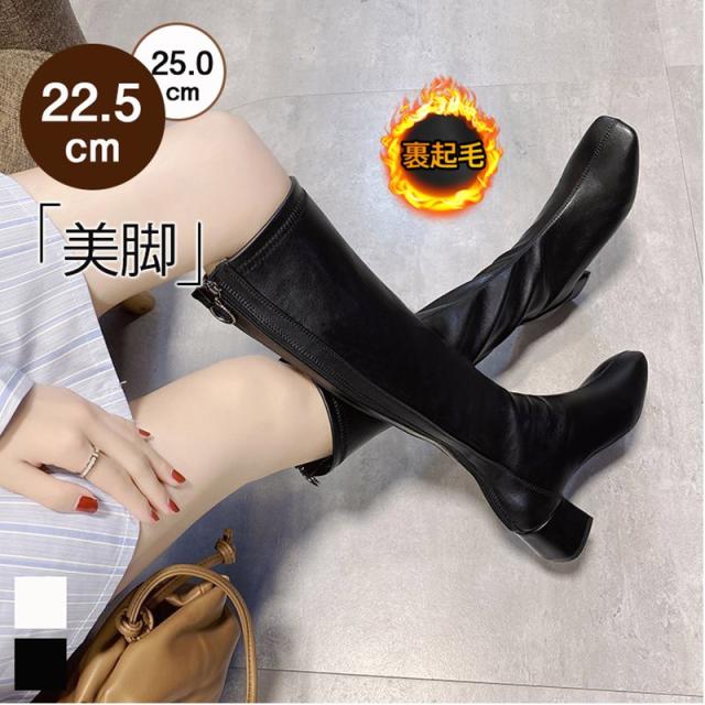 半額セール ロング丈 ぺたんこ ロングブーツ ハイヒール ヒール 無地 シンプル 秋 秋冬 靴 ブーツ ニーハイブーツ 裏起毛 美脚 太ヒール 疲れにくい
