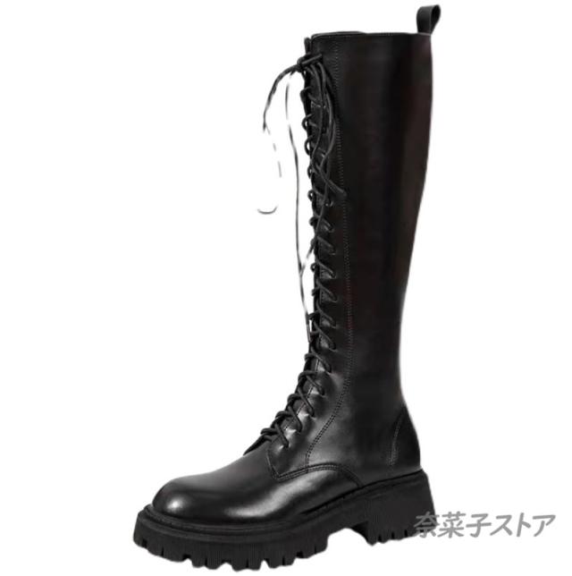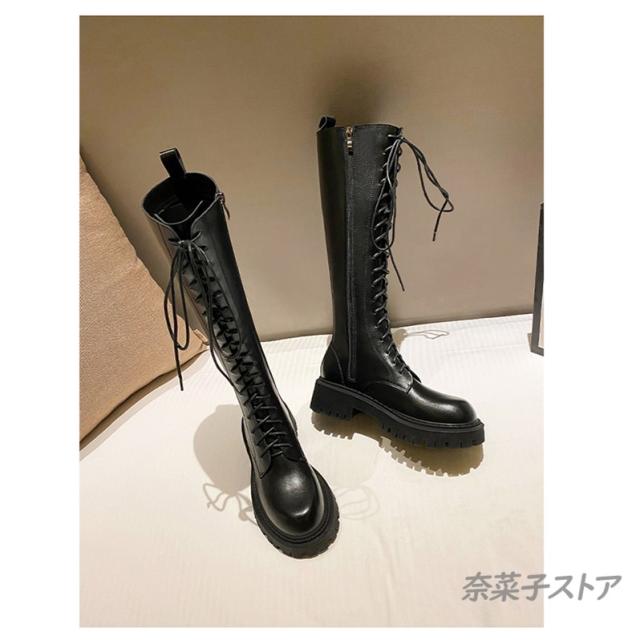半額セール ロングブーツ ロング丈 編み上げ ヒール 秋 秋冬 靴 ブーツ ニーハイブーツ 裏起毛 美脚